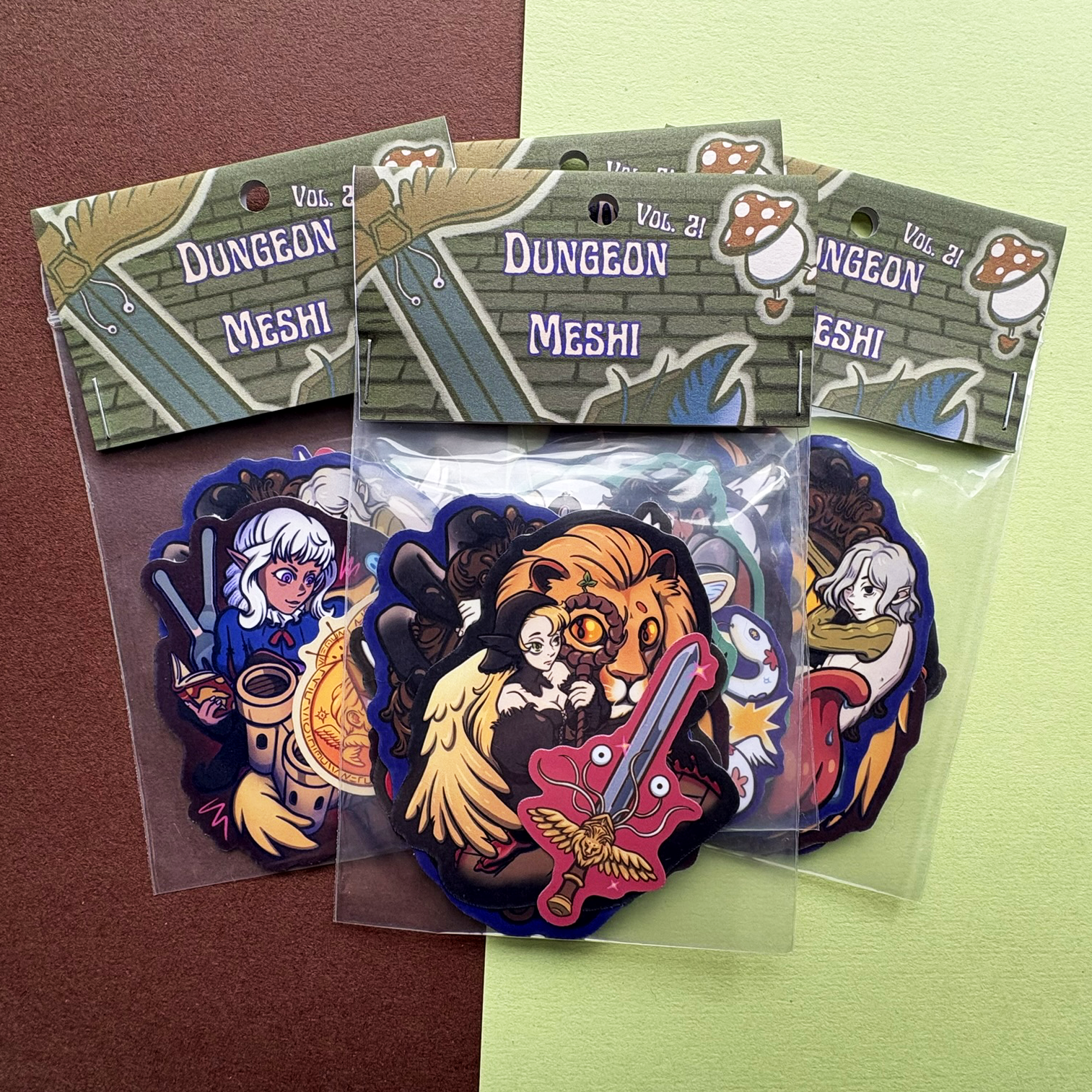 This 2.5 inch acrylic keychain is double sided and features a gold D-shaped clasp. Inspired by Dungeon Meshi.